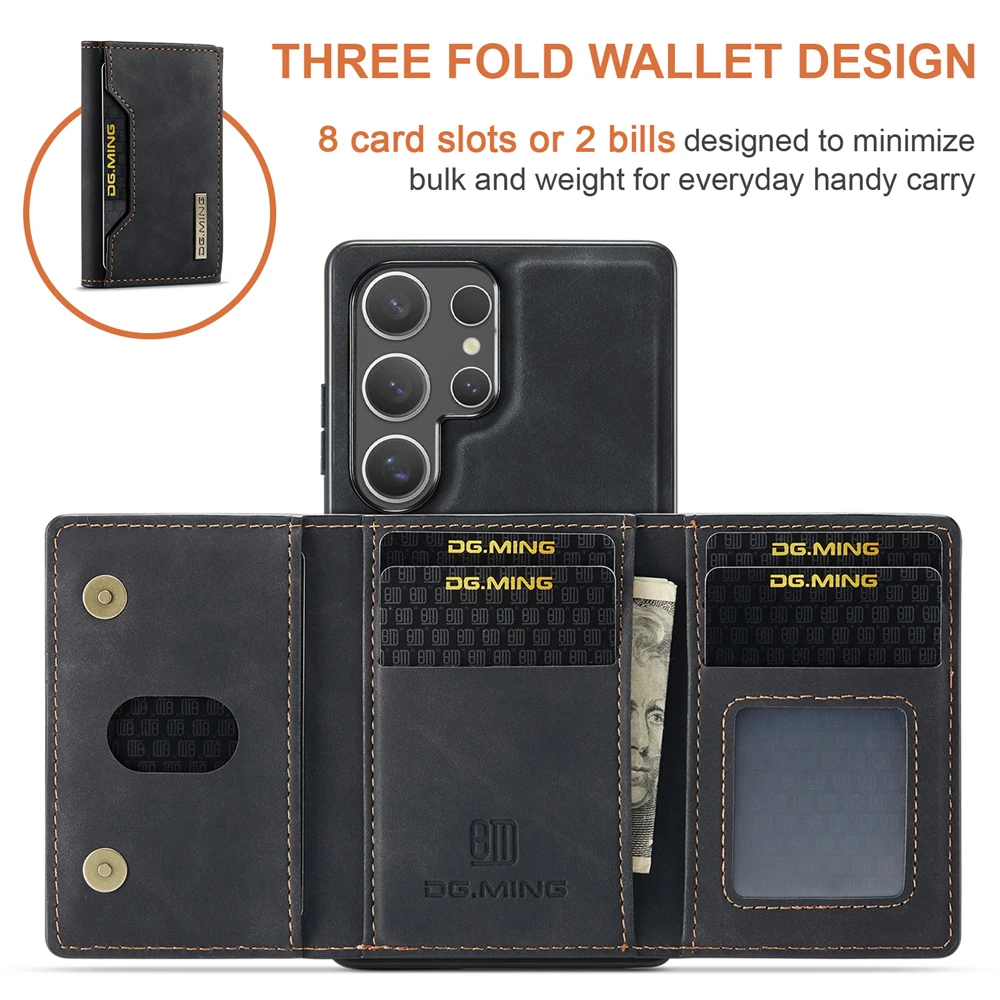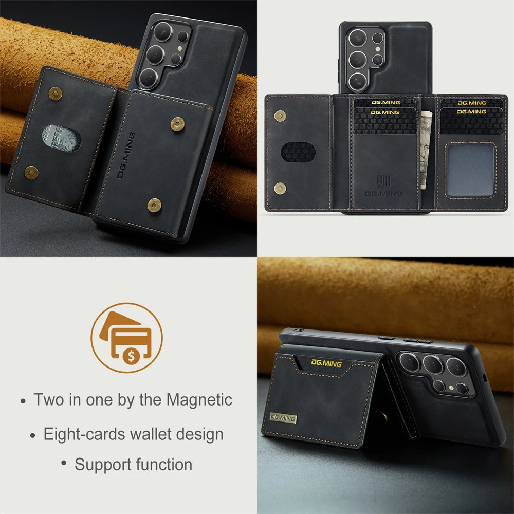 Keep your essentials in one sleek, pocket-friendly case. This magnetic wallet case protects your Samsung phone with a shock-absorbing bumper while a low-profile card pocket stores your must-have cards securely. Raised edges guard the screen and camera, grippy sides prevent slips, and precise cutouts keep every tap and press effortless. Wireless charging works on most models when cards are removed.