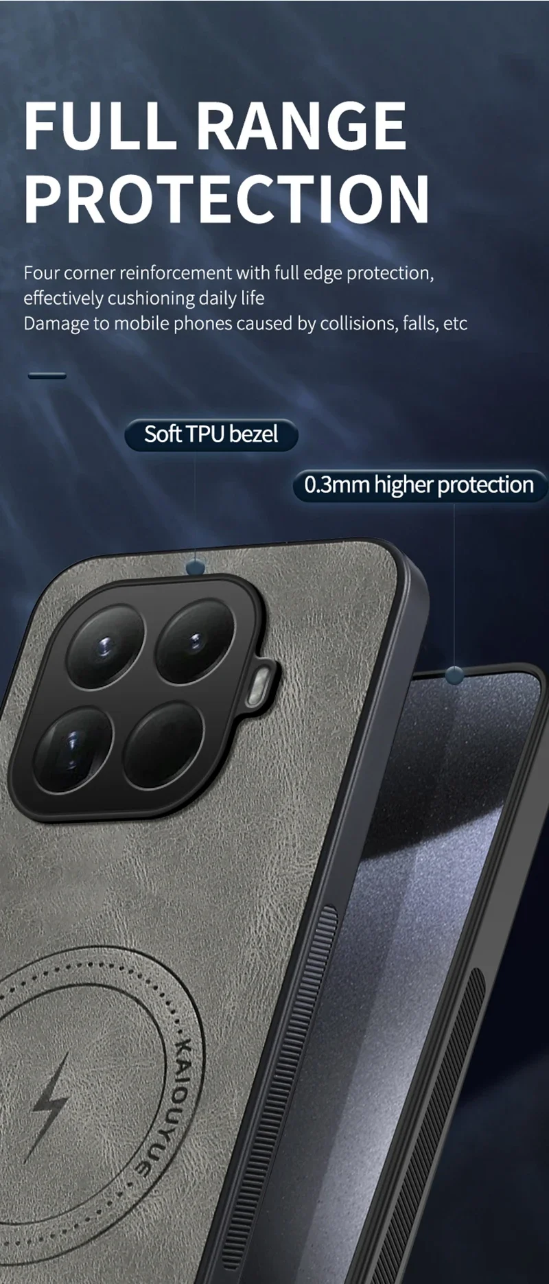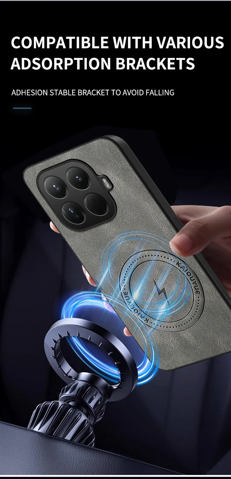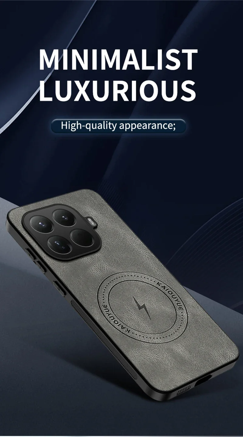 Give your Xiaomi phone a premium shield: a slim shock-absorbing case wrapped in smooth leather-texture (PU) for a refined grip. Reinforced corners disperse impact from everyday drops, raised bezels protect the screen and camera, and the built-in magnetic plate pairs smoothly with magnetic mounts—without adding bulk.