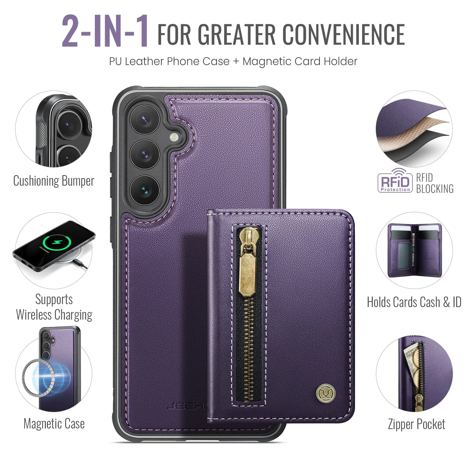 Elevate daily carry with a slim folio that blends premium leather style, magnetic closure, and practical storage for cards and cash. The soft inner lining cushions your Samsung phone, raised edges protect the screen and camera, and the foldable cover turns into a stable stand for hands-free viewing. Precise cutouts keep every tap, swipe, and call effortless, while the low-profile design slips easily into pockets and bags.