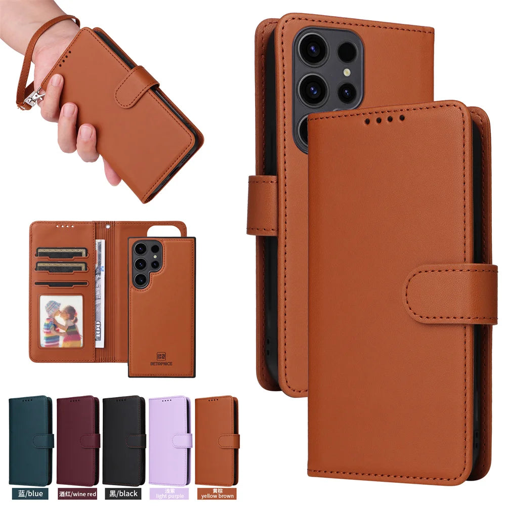Dress your Samsung Galaxy in premium leather protection with a snap-on magnetic wallet that carries your daily cards in style. A strong magnetic ring secures the wallet and works with MagSafe-style mounts, while the shock-absorbing bumper, raised bezels, and precise cutouts keep your phone safe and easy to use. Remove the wallet to charge wirelessly—simple, slim, and travel-ready.
