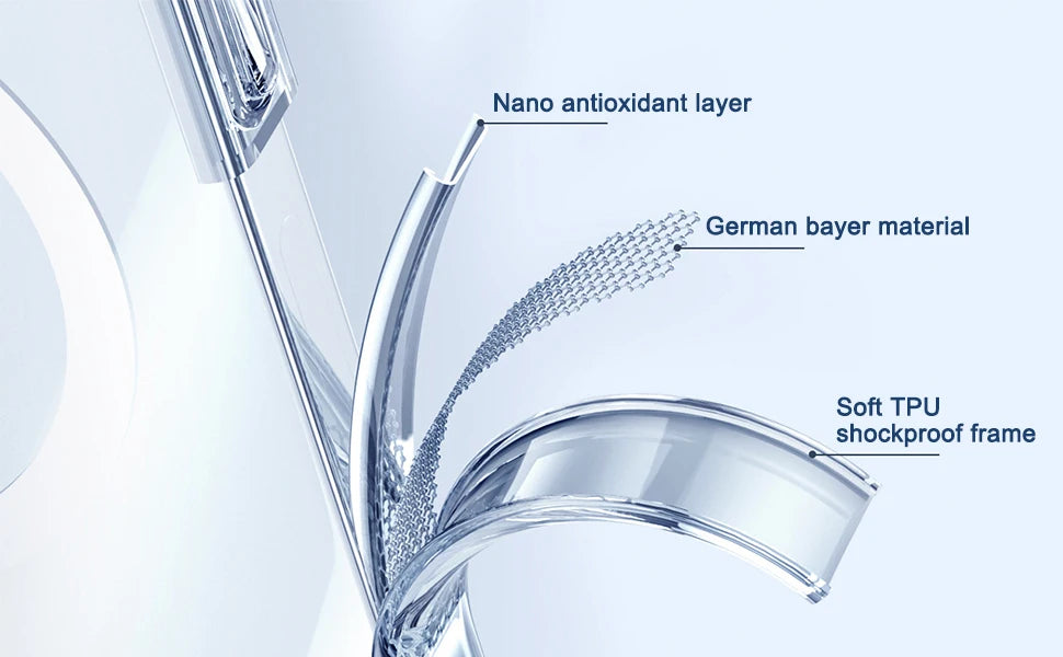 - Clear, anti-yellow hard back