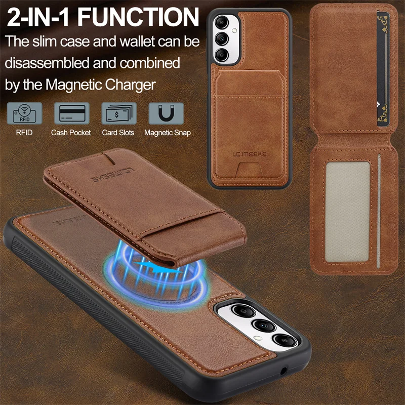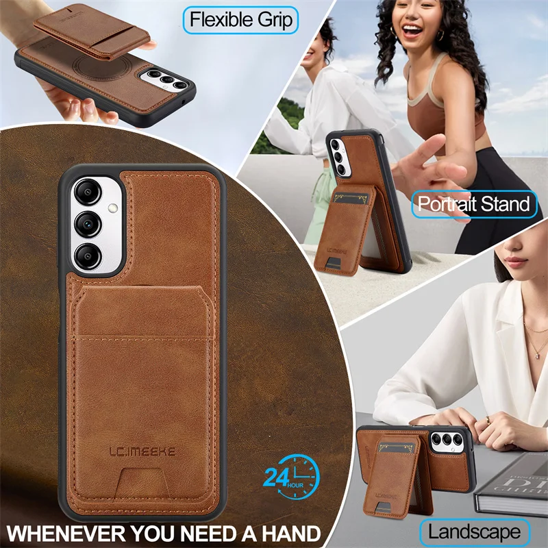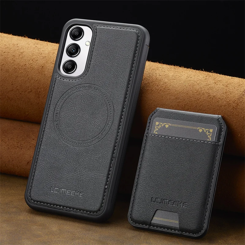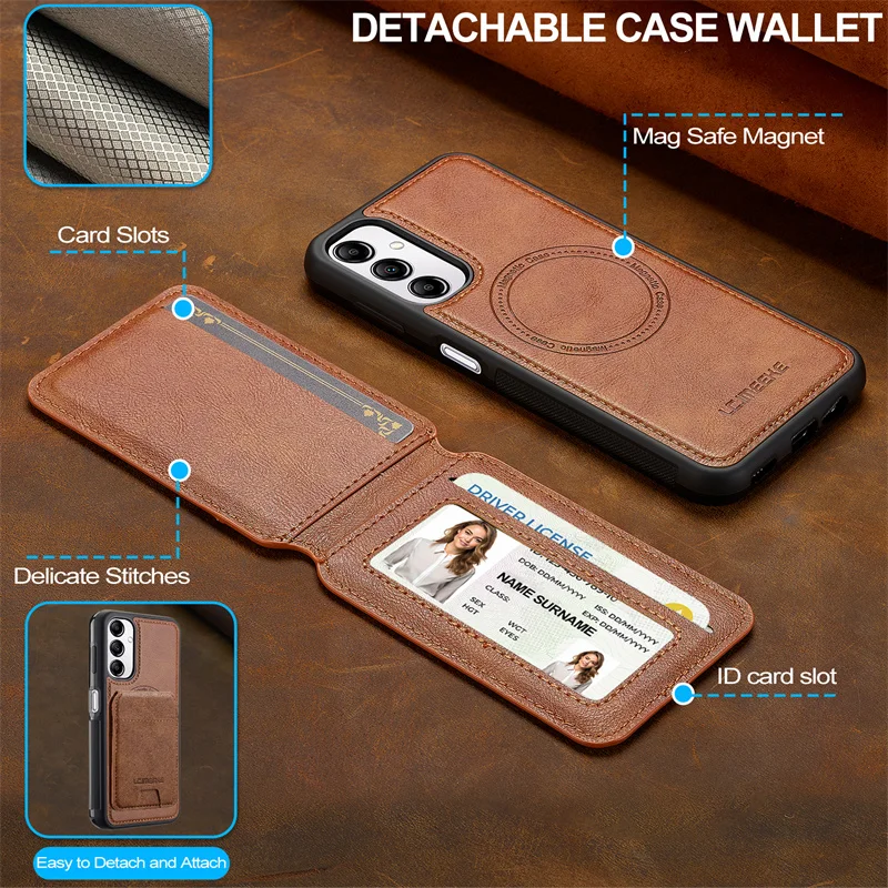 Protect your Samsung Galaxy with a slim, MagSafe-compatible leather case that keeps essentials close. A low-profile card holder stores 1–2 cards, while the built-in magnet ring locks to MagSafe chargers and mounts. Raised bezels protect the screen and camera, and the soft-touch grip prevents slips without adding bulk.
