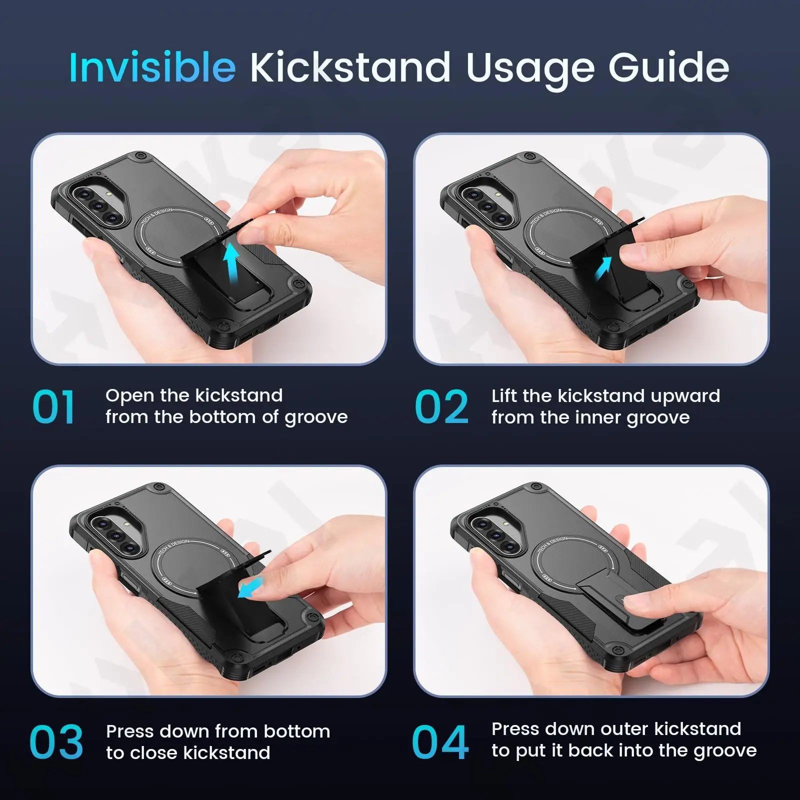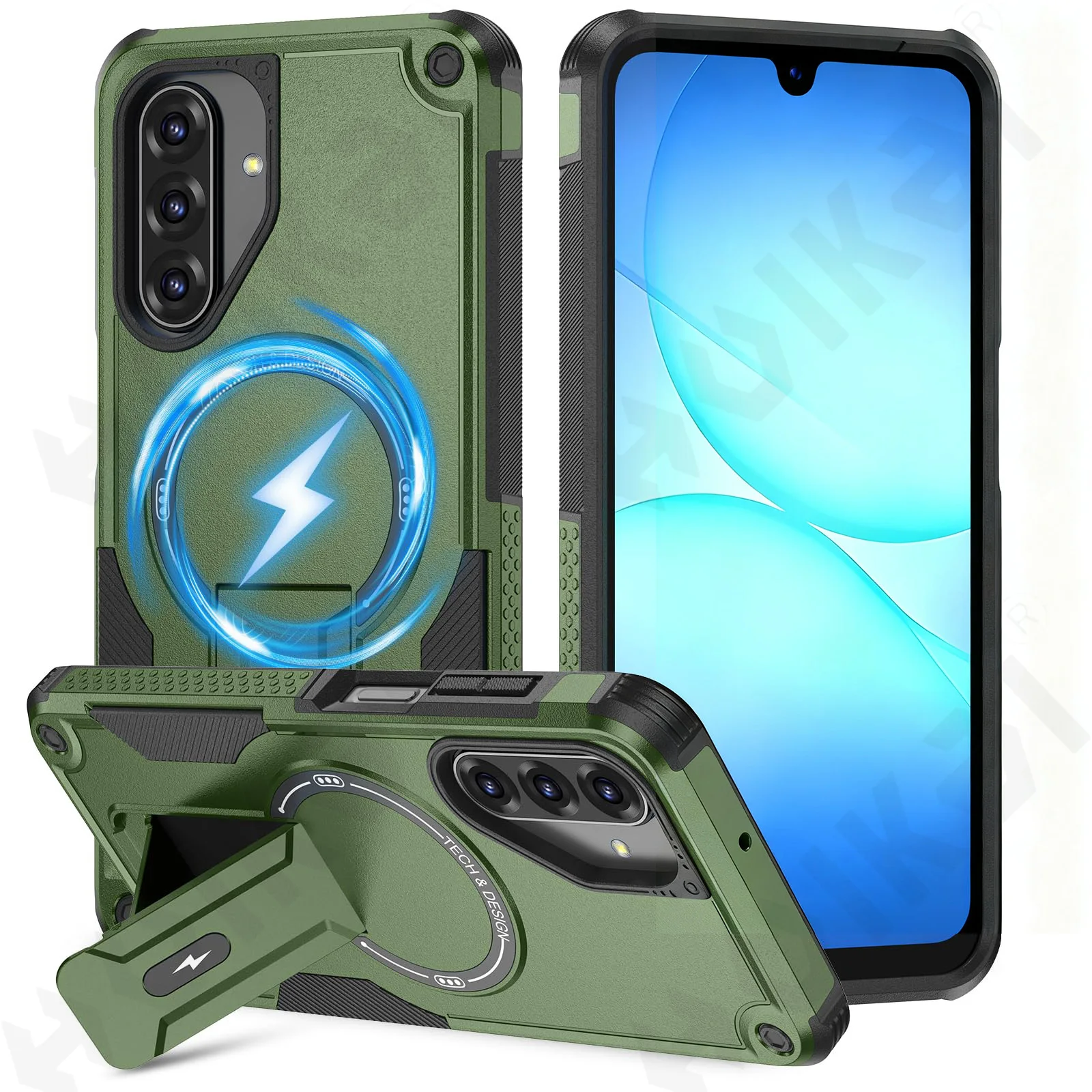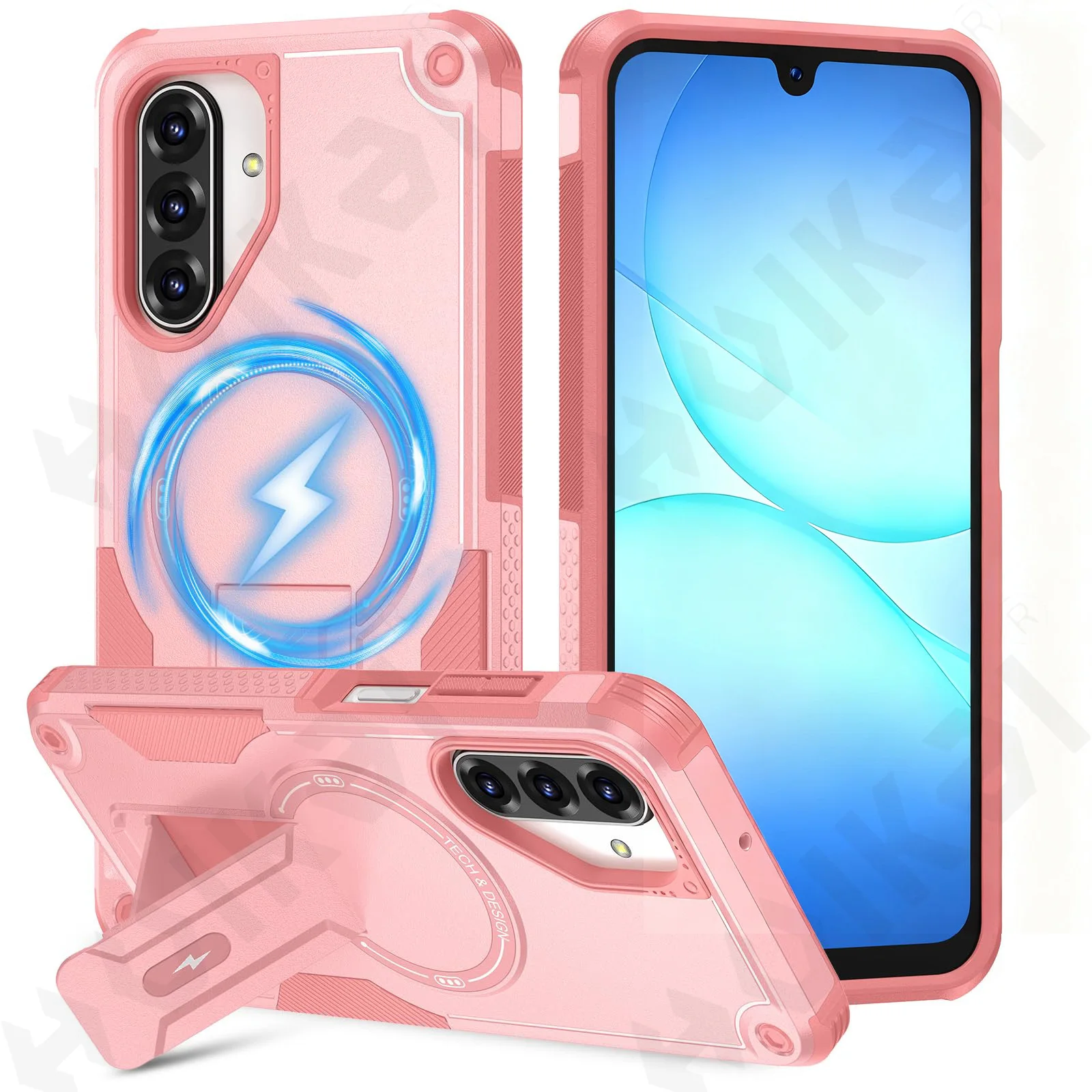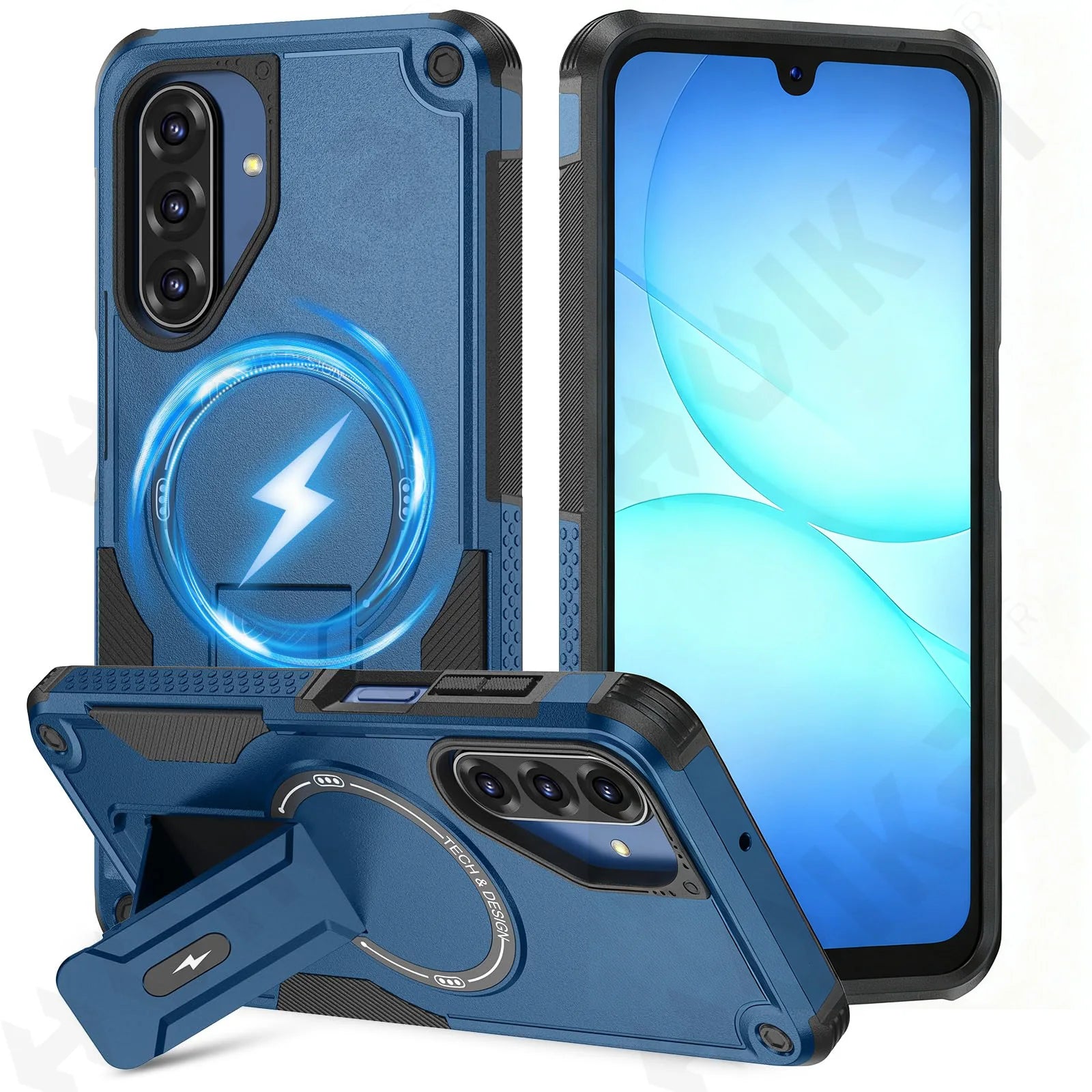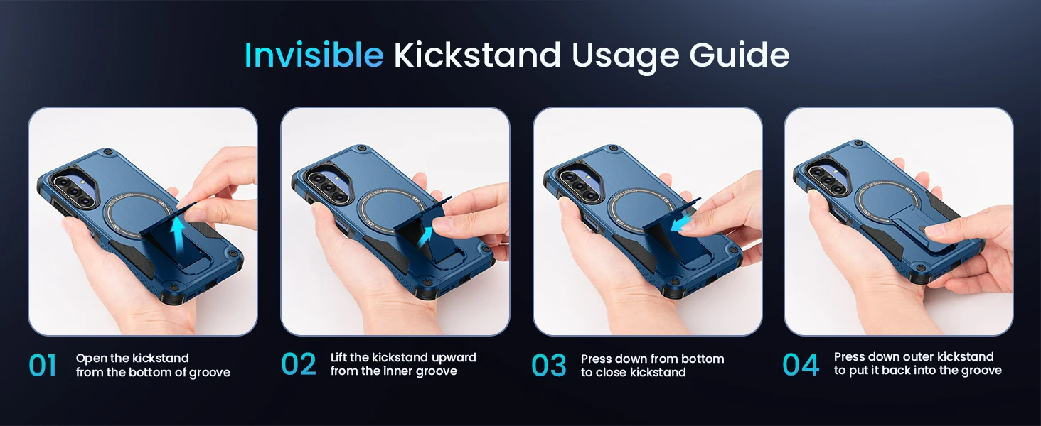 Built for daily impact, this slim rugged case adds a precise magnetic ring for MagSafe-compatible chargers and mounts, while the metal kickstand snaps open for stable portrait or landscape viewing. Grippy edges, raised bezels, and shock-absorbing corners keep your Galaxy safer without bulky weight.